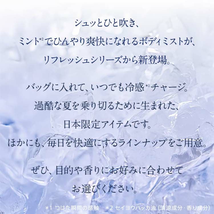 蒸し暑い日本の気候に合わせてつくられた、清々しいミント&シトラス香るボディケアシリーズ。