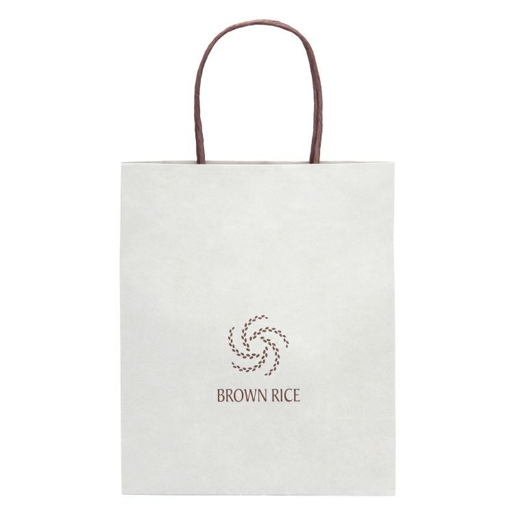 玄米をモチーフに「巡る、咲く」を表す、BROWN RICEレストランのシンボルがデザインされた手提げ紙袋。 「ブラウンライスヴィーガンクッキー缶」の贈答時などに、ぜひご利用ください。 【サイズ】 約 W220×D120×H265mm ※シールは付きません、予めご了承ください ※たたんだ状態で同梱いたします