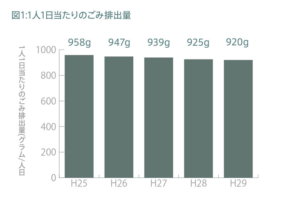 環境省の調べによると、2018年の1人1日当たりごみ排出量は920g(図1)