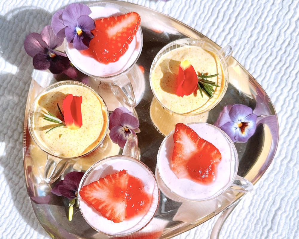 デザート:ローズ香る苺とターメリックのヨーグルトソース